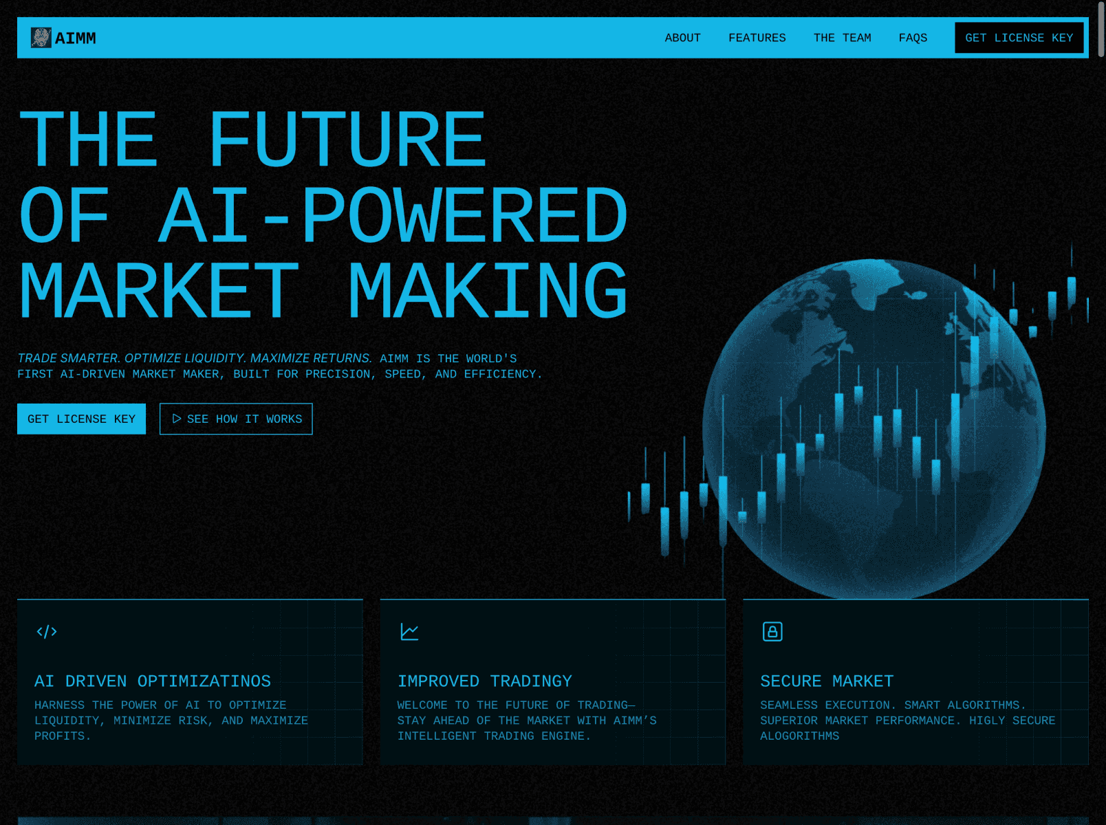 I designed the AIMM website to showcase both its AI-powered market-making platform and the team behind it, including mission and vision statements. The layout makes complex trading tools understandable while highlighting the company’s credibility and forward-looking purpose.