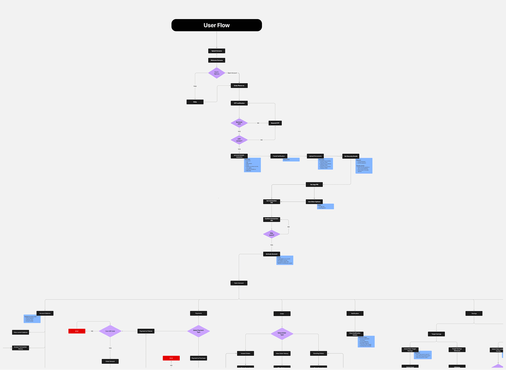 To give the team a clear picture of what we were building, Eldaa Bank’s entire user flow was mapped out in FigJam. It covered everything from onboarding to transfers, savings, and support. Having it all in one place made it easy to spot friction early, understand how users move through the app, and make sure every journey felt simple and inclusive.
