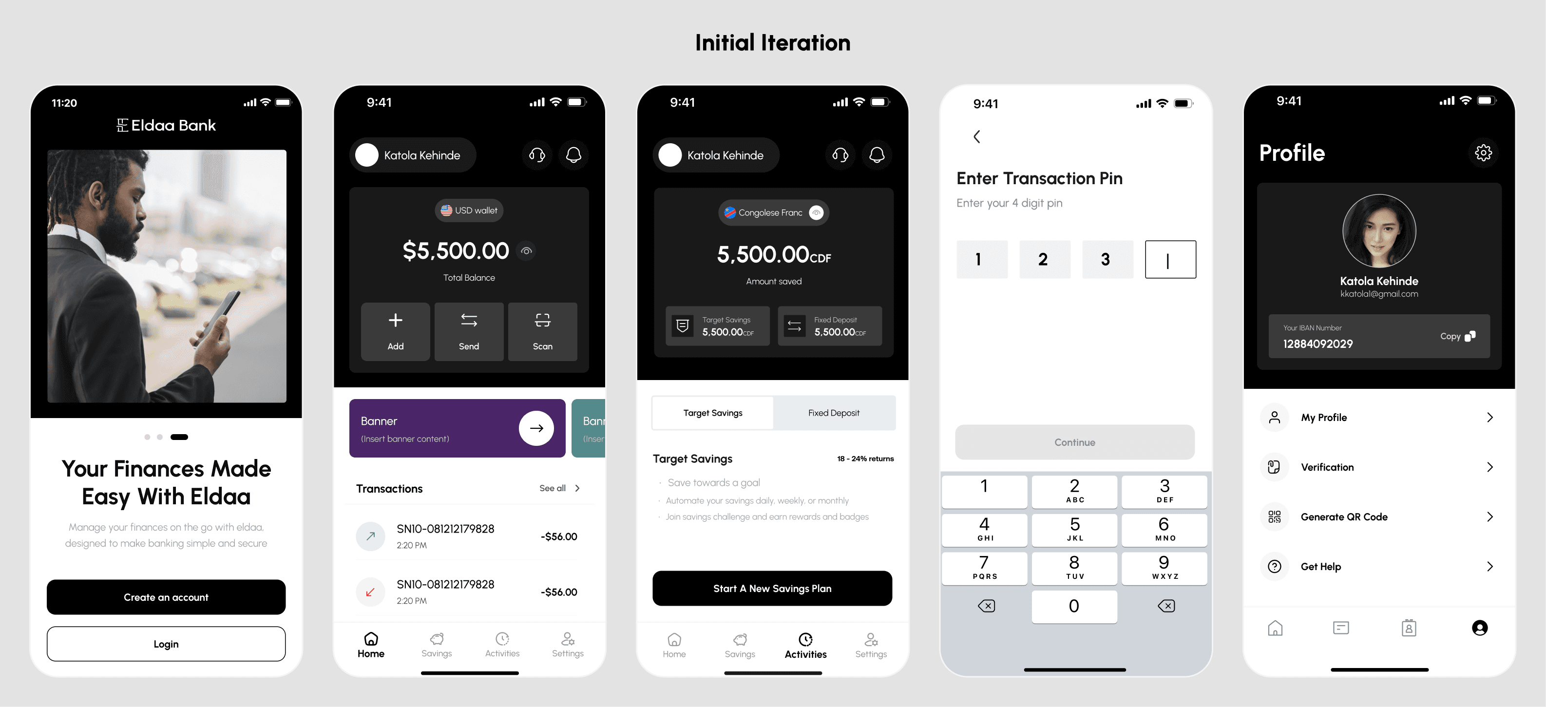 The first version of Eldaa already covered the core flows, but the team wanted an experience that felt calmer, clearer, and more visually consistent. We reviewed the early designs, identified areas that looked cluttered or overwhelming, and then refined the layouts, spacing, and visual hierarchy. This second iteration focused on making the interface feel more modern and more comfortable for first-time digital banking users. The goal was the same. Keep every screen functional, familiar, and easy to trust.
