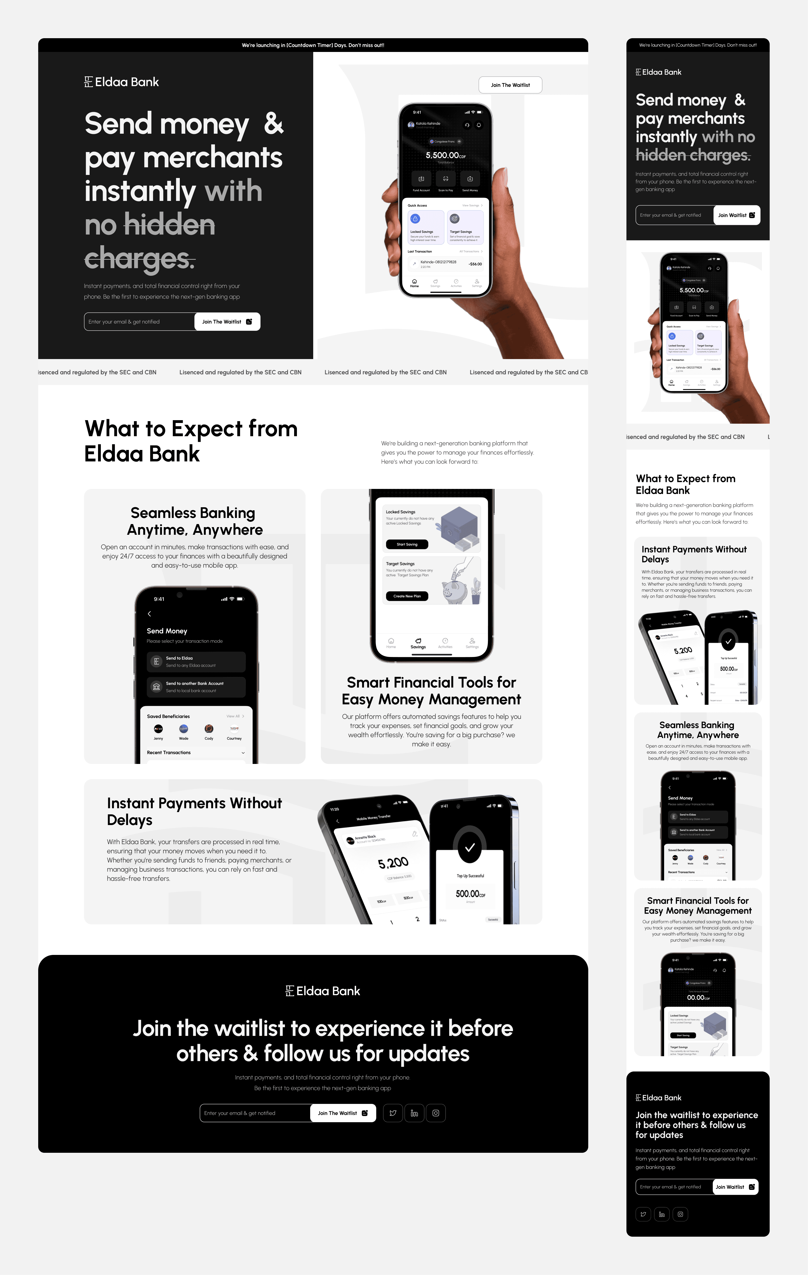 Before Eldaa Bank launched, I designed a waitlist page to introduce the brand, build anticipation, and earn early trust. The goal was to get sign-ups while giving people a clear sense of what Eldaa offers and why it’s different.