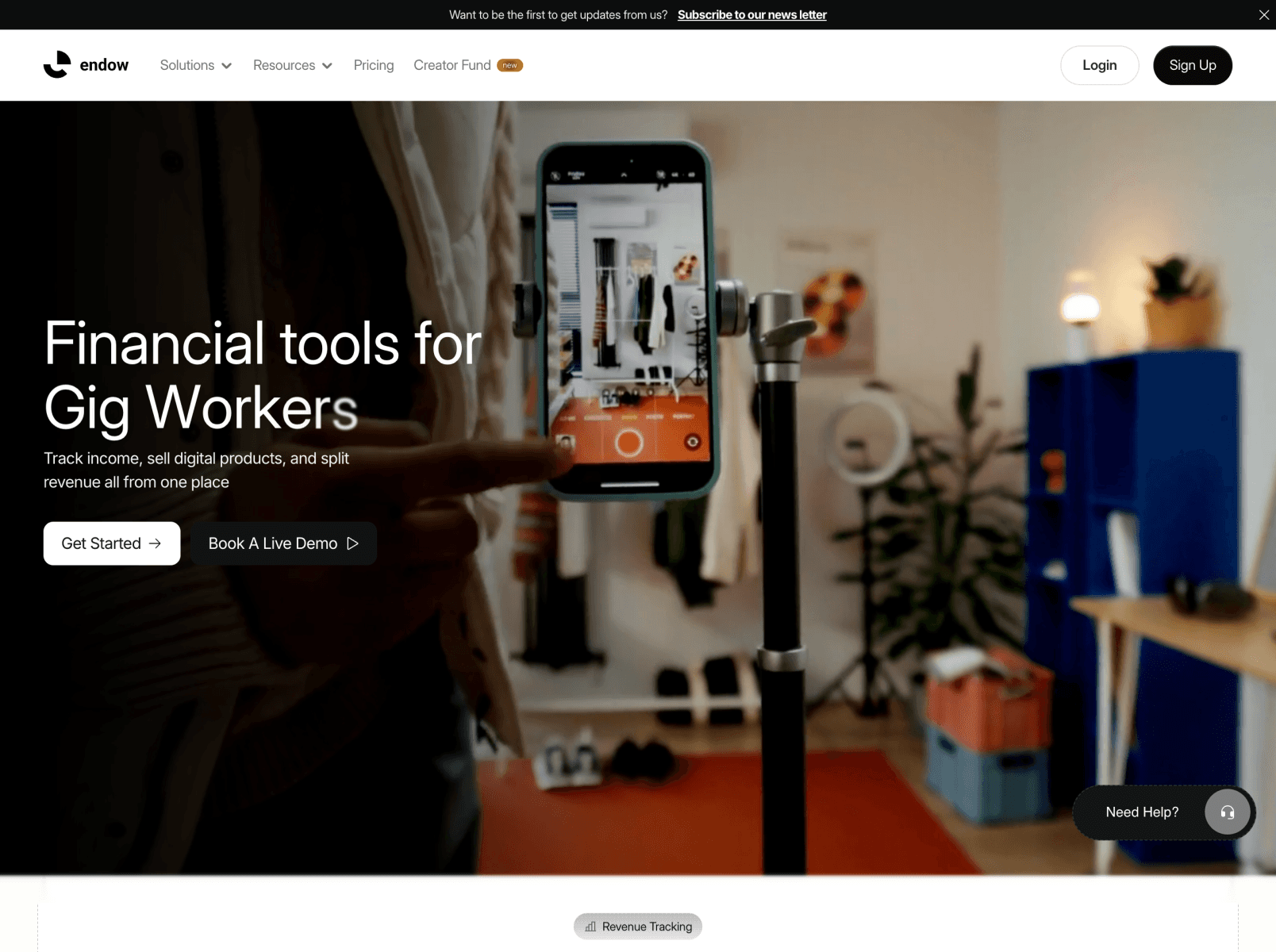 I partnered with Endow to design a modern, creator-focused platform that brings clarity and structure to the financial lives of freelancers, gig workers, and digital entrepreneurs. The goal was to build a site that feels intuitive and empowering: a place where creators can track income, sell products, manage collaborations, and receive payouts without navigating multiple tools or spreadsheets. The experience needed to communicate trust, simplicity, and global reach for a user base that depends on transparency and speed.