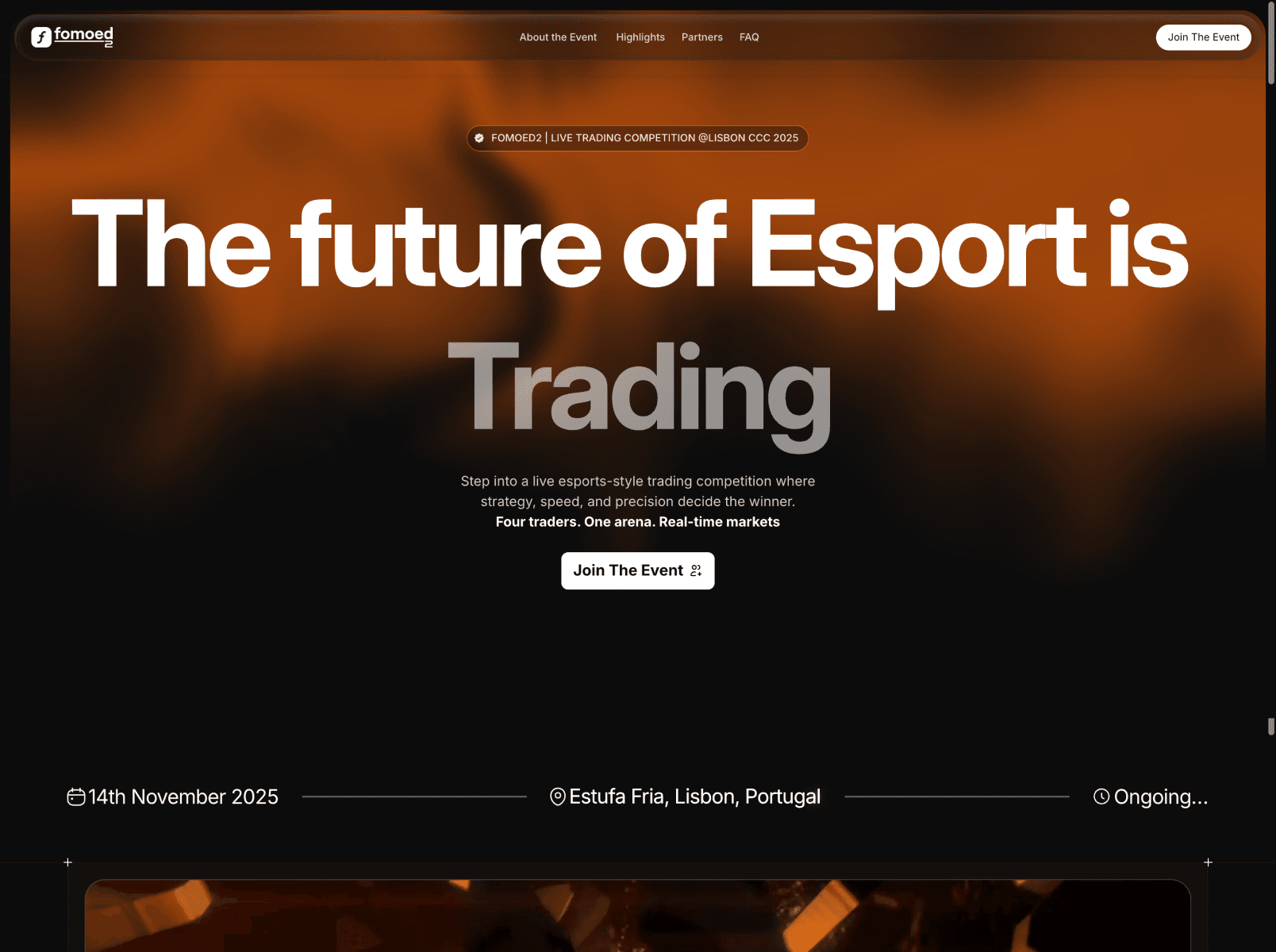 Page sections were structured to guide visitors naturally from event overview, to competition rules, to registration and partnership opportunities. Consistent typography, spacing, and visuals help users scan schedules, participant profiles, and highlights without feeling overwhelmed. Working with the Fomoed2 team ensured the design captured both the energy of live trading competitions and the professionalism of the event. The final website provides an intuitive, dynamic, and exciting experience that encourages users to attend, compete, or engage with the community.