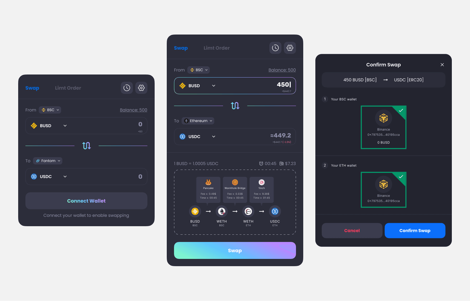During swaps, the route is clearly visible for better transparency and bulding trust with users.