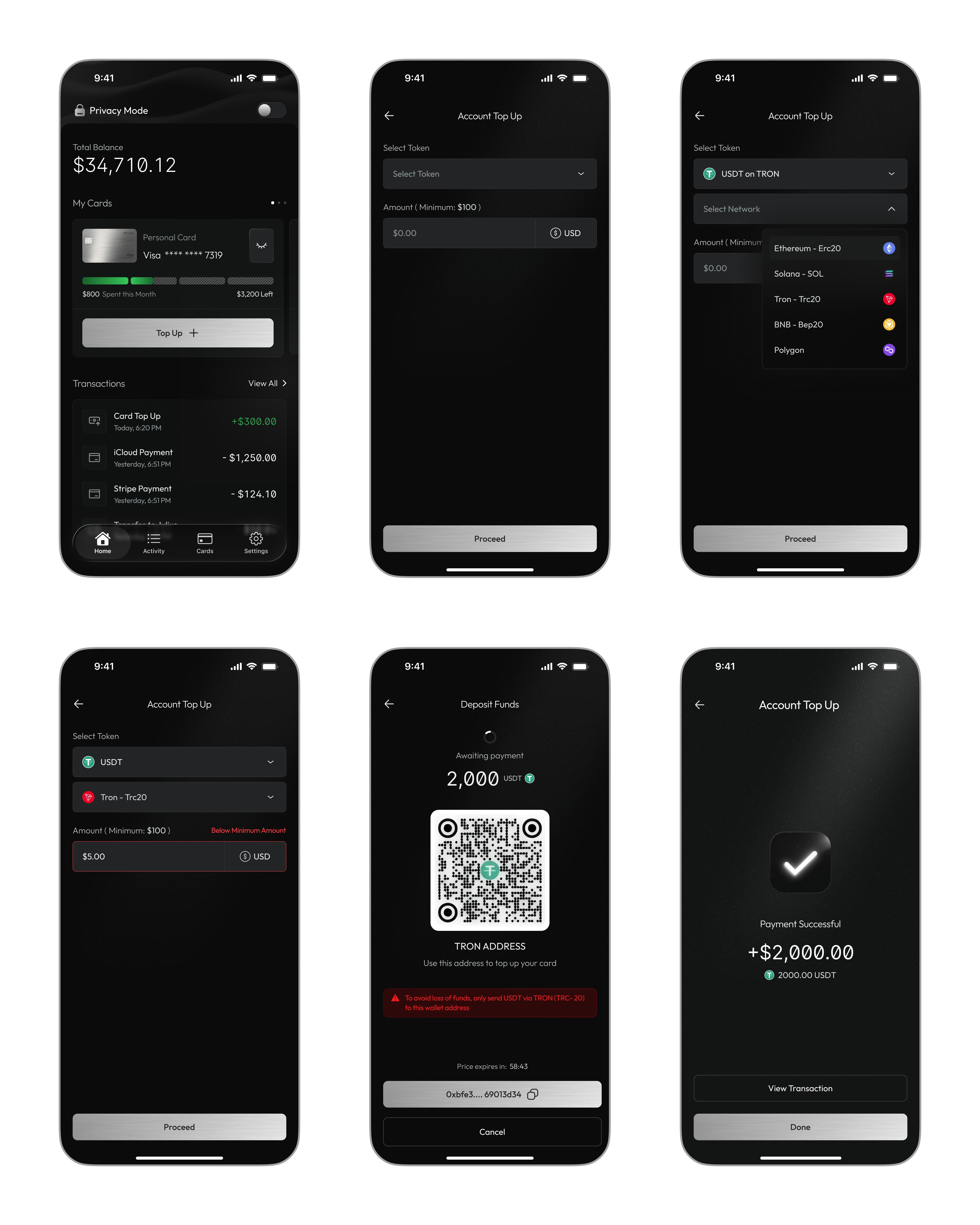 Instead, I focused on clarity and control. The product communicates trust by being transparent and predictable. Users can clearly see their balance, understand their spending, and control how their cards behave. Every action has immediate and understandable feedback. Rather than asking users to trust the system, the design gives them direct control over it.