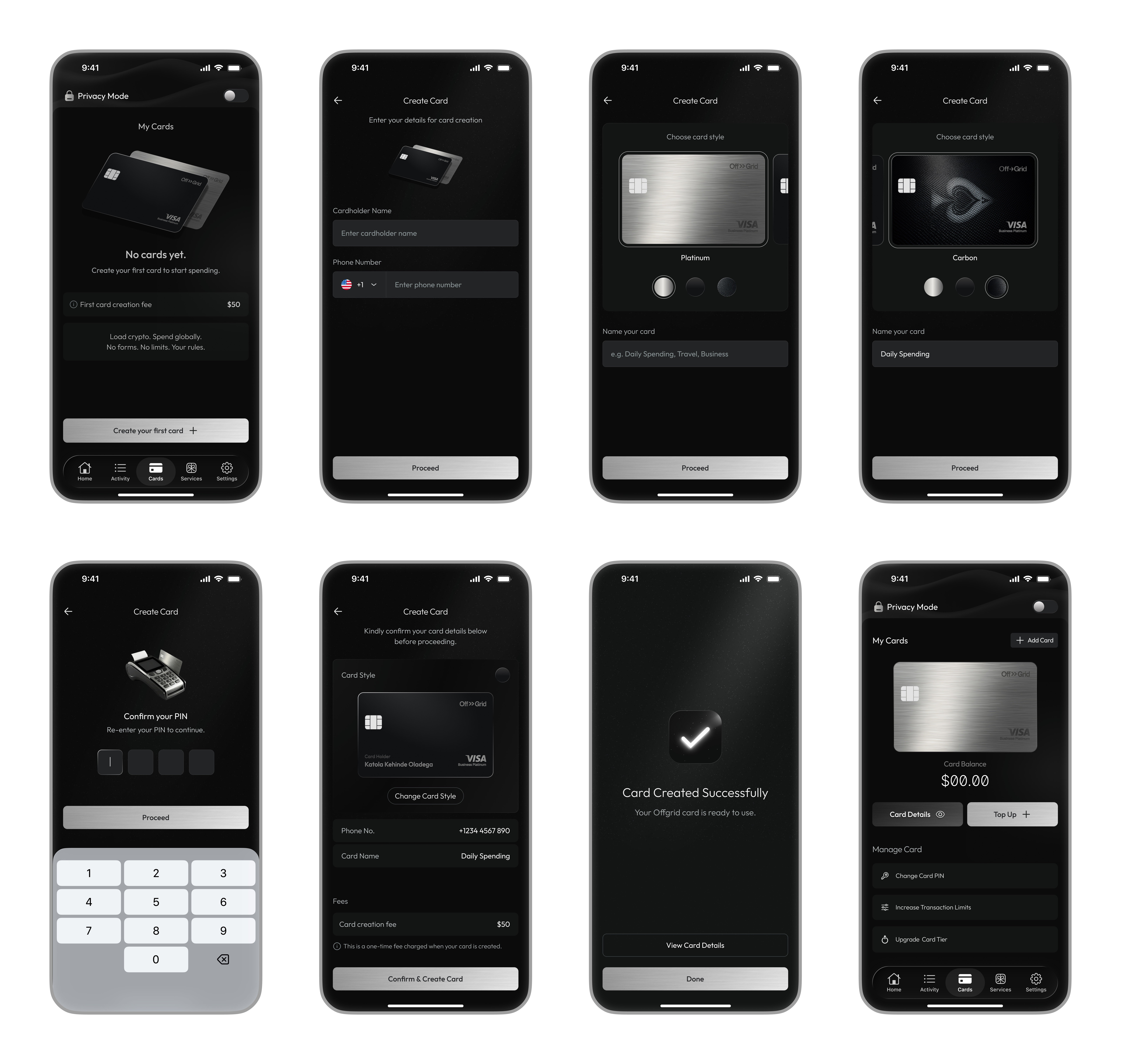 Traditional fintech products are built around identity verification, data collection, and compliance-heavy flows. This creates friction, excludes users who value privacy, and removes control from the user. There was a need to design a financial product that: Minimizes personal data requirements, Reduces onboarding friction and Still feels secure, modern, and trustworthy