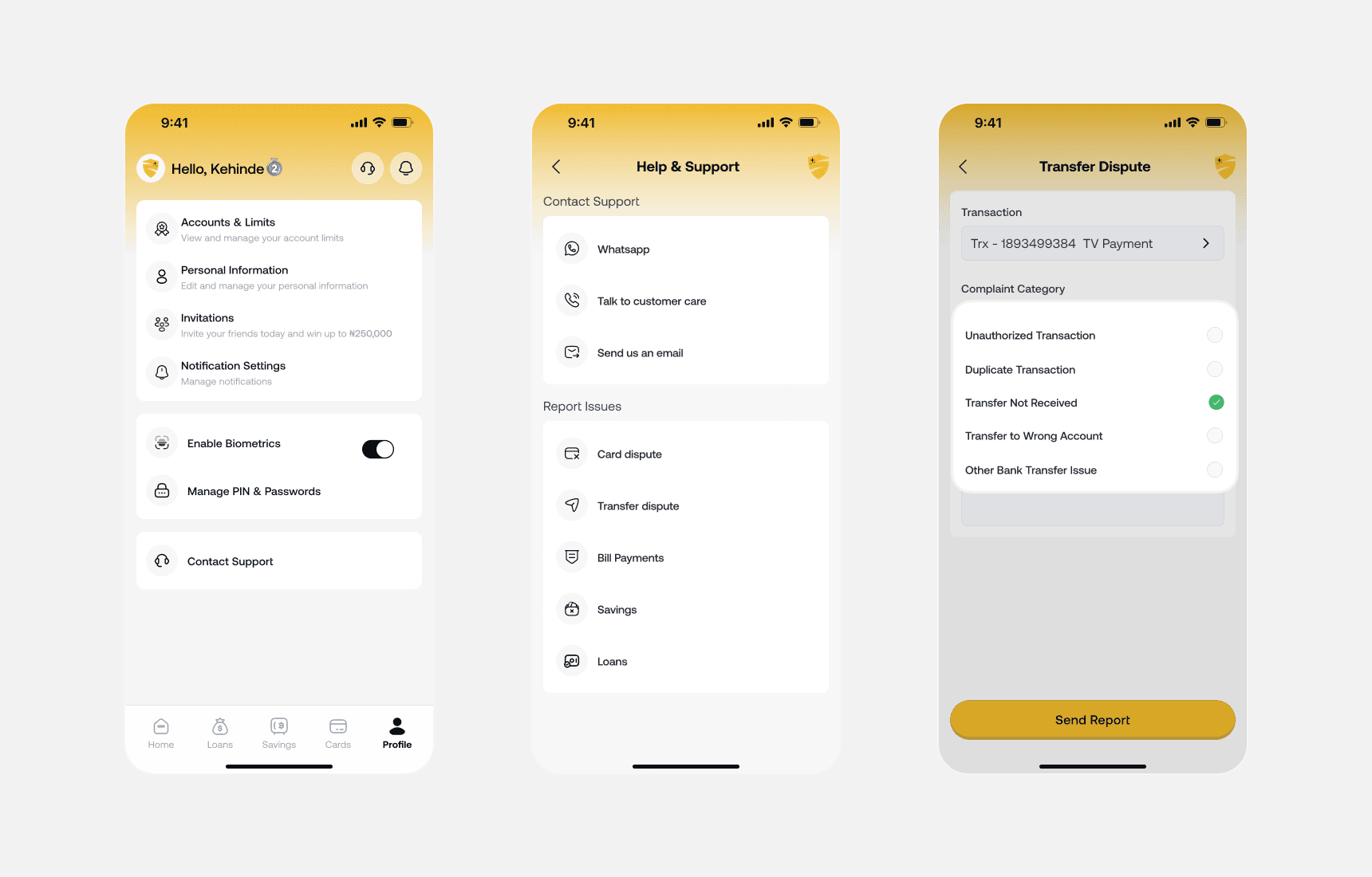 Help and support can determine whether a user stays or gets frustrated and leaves. So we designed Springfield’s support flow to feel quick and stress free. Users can contact customer care or report any issue directly inside the app.